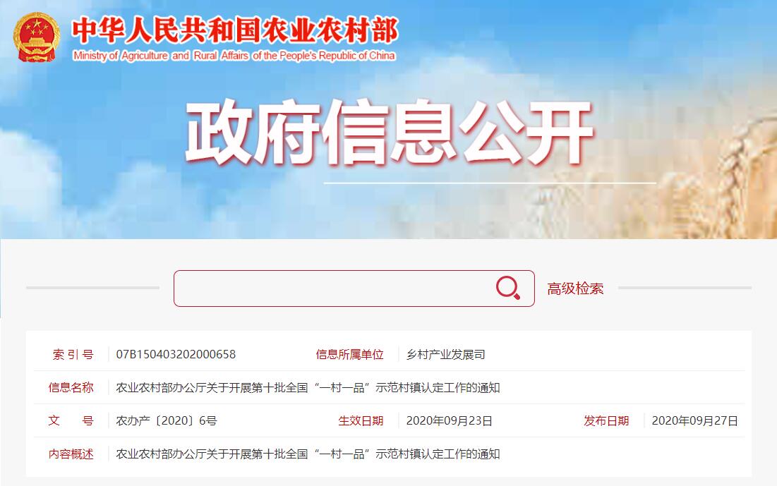 农业农村部办公厅关于开展第十批全国“一村一品”示范村镇认定工作的通知
