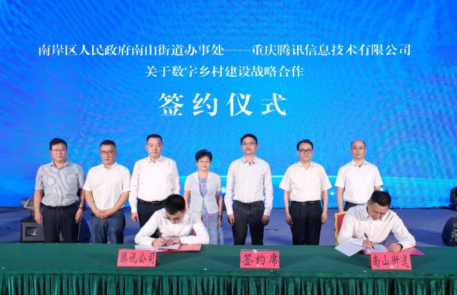 图为:南岸区人民政府南山街道办事处与重庆腾讯信息科技有限公司展战略合作签约现场